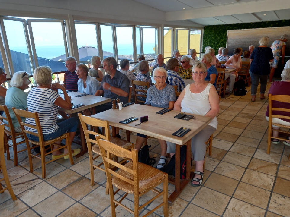 17/8: Deilig frokost. Treffe guiden Birgitte – Nord Bornholm i dag. Fiskerbyen Hasle, borgruiner osv. Lunsj på restauranten Brøddan i Gudhjem. Omvisning i Nylans kirke – en av de 4 rundkirkene på øya. Guiden forlater oss, og vi reiser til hotellet for middag. Strålende vær og jammen ble det kveldsbad for noen i kveld også.