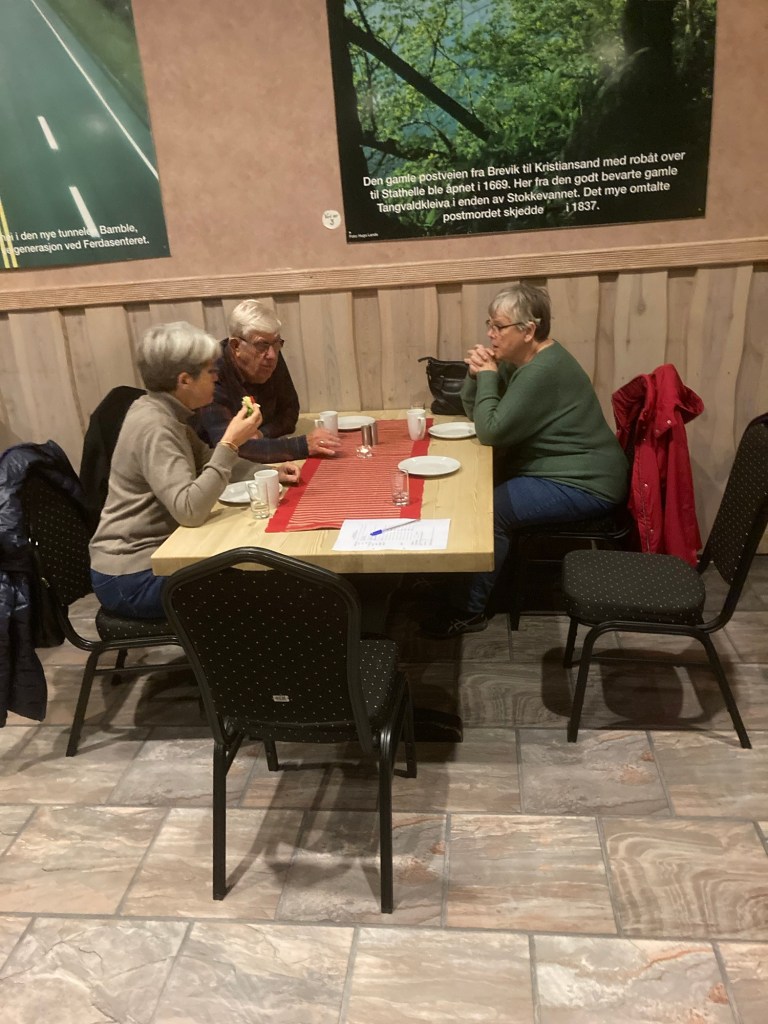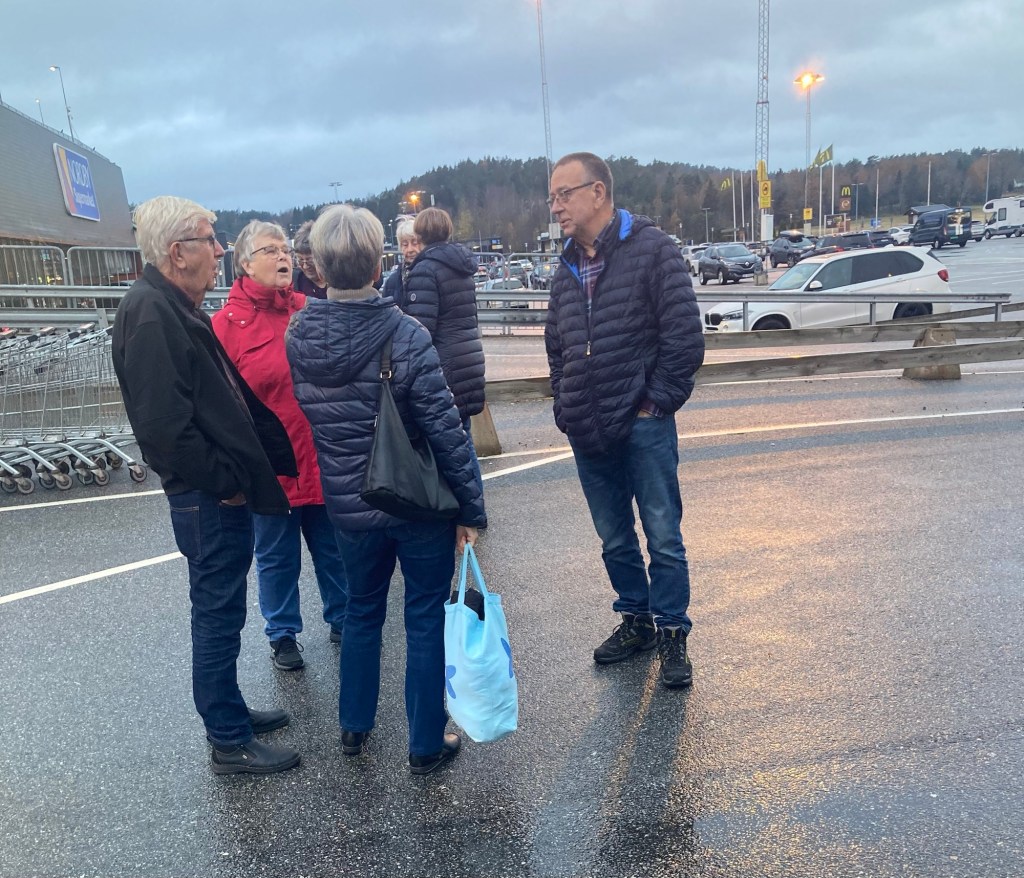 Høstens siste turer gikk til Strømstad. På den første turen var vi 45 etter noen forfall. Det var en av høstens dårlige dager med snø. regn og glatte. Vi kom greit til Sandefjord, hadde en fin overfart med frokostbuffet til Strømstad, hadde en god handel på Norbysenteret og kom oss etter hvert til Vestfold. Da gikk trafikken sakte. Den løste seg ved veien til Skien, men da sto trafikken i motsatt retning helt til vi kom til Rugtvedt hvor vi spiste. Etter 3 kvarter kjørte vi videre og køen sto fremdeles i flere kilometer. Vi nådde Arendal kun litt forsinket, men alle virket fornøyde!