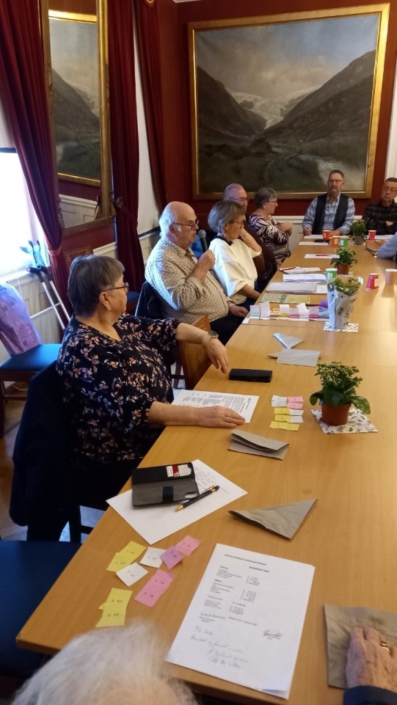 Først spiste vi gode smørbrød, wienerbrød og kaffe og solgte lodd. Etter en minnestund hvor vi mintes de av våre medlemmer som var gått bort siden siste årsmøte, ble årsmøtet avviklet. Beretning og regnskap for 2025 ble enstemmig godkjent. Valgene ga slikt styre: Leder Bjarne Robstad, kasserer Torill Hanssen, sekretær Signe Eidskard Morka, styremedlemmer Gunvor Pedersen (valgt som nestleder av styret), Inger Marie Olsen, Astri Reiersølmoen, Morten Foss (ny), Tore Svein Tvede (ny) og Jens Arild Kjempekjenn. Varamedlemmer er Thor Martin Reiersølmoen, Brit Odveig Larsen Risdal (ny) og Hans Robert Hansen. Leder ga avslutningsvis en bred orientering om planlagte turer i 2026 hvoretter en foretok trekning på lotteriet. Møtet samlet hele 75 medlemmer (etter 8 forfall p.g.a. sykdom og noen ikke møtt) til de gode samtalene.