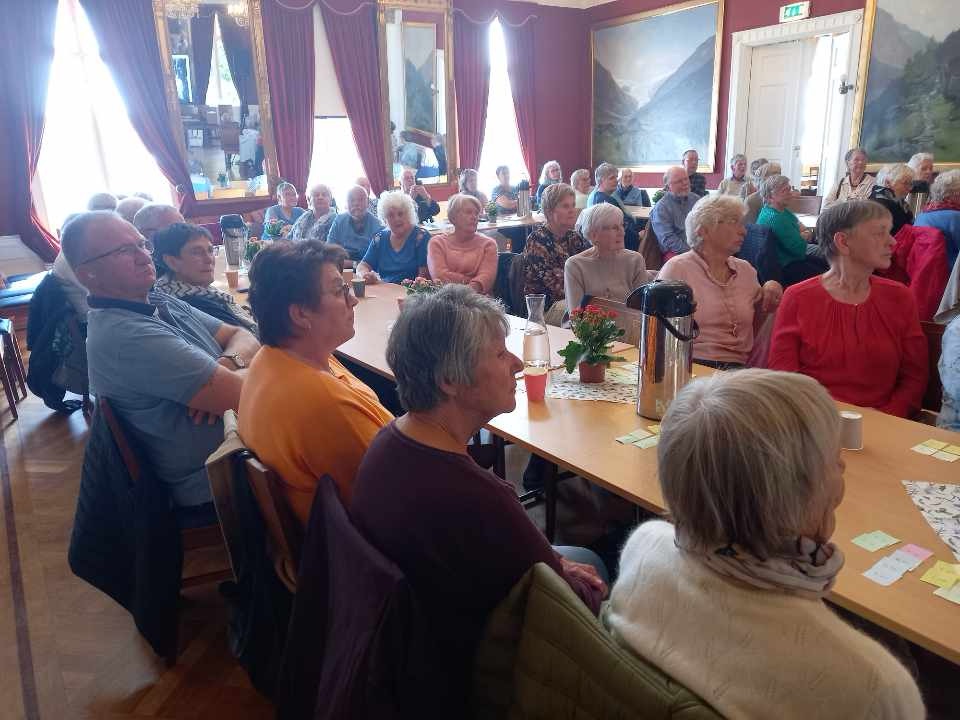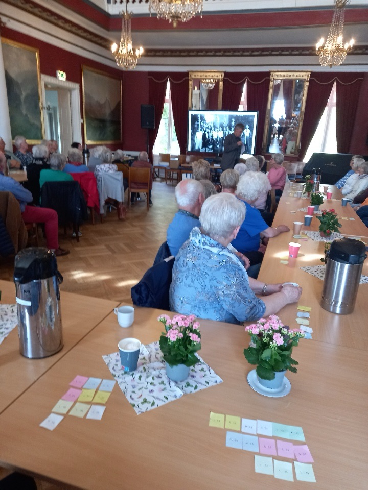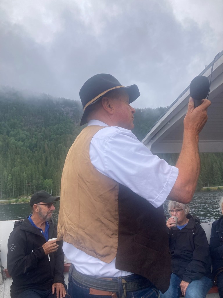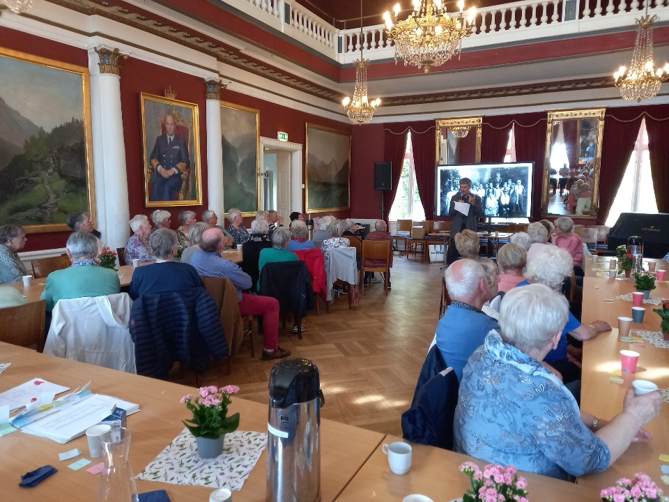 Pensjonistforeningens langtur i 2025 gikk til Røros med hele 44 deltakere. Første hoved-stopp for å spise var på Myklegard i Løten hvor vi fikk en nydelig og mektig lunsj. Turen gikk videre til Røros Hotell hvor vi bodde under hele turen. Andre dagen var det Bergstadvanding med en dyktig guide. Røros kirke, bergverket og byen ble besøkt. Tredje dagen gikk turen til Synnevika hvor vi gikk ombord i Fæmund II som tok oss over Femunden til Femundshytta. En fin båttur i noe grått, men greit vær. Her ble vi hentet av vår faste og gode sjåfør – Jan Roald – og kjørt tilbake til Røros. På turens fjerde og siste dag, gikk turen først til Aukrustsenteret i Alvdal hvor vi så film og fikk god guidet omvisning. Turens siste måltid var igjen på Myklegard: Svinestek med surkål! Alle måltidene, samt oppholdet på hotellet var meget gode. Om turen kan sies som vi skrev på skole: Alle var enige om at det var en hyggelig og meget fin tur med en dyktig sjåfør!