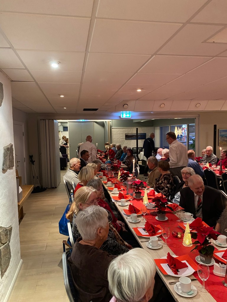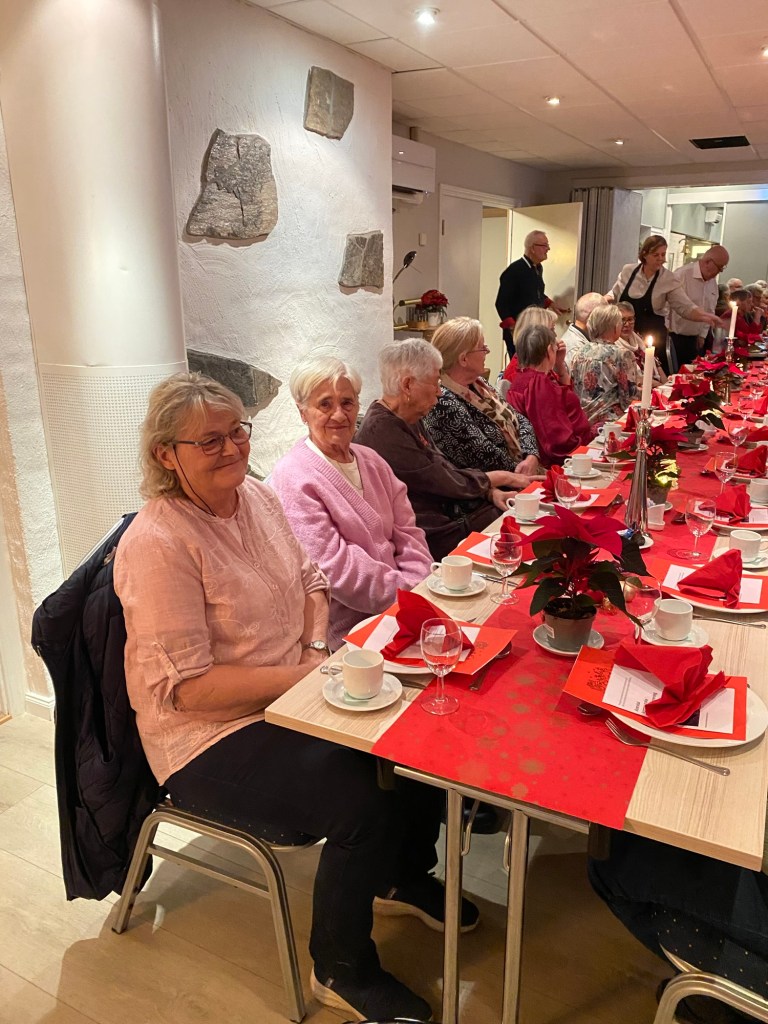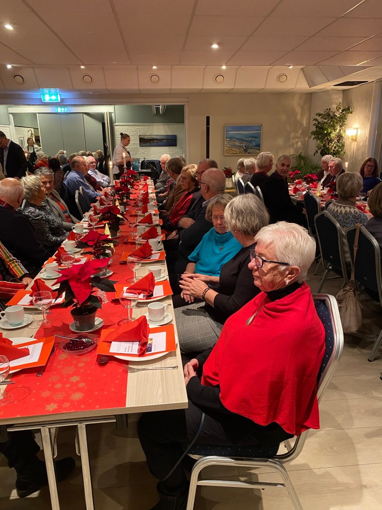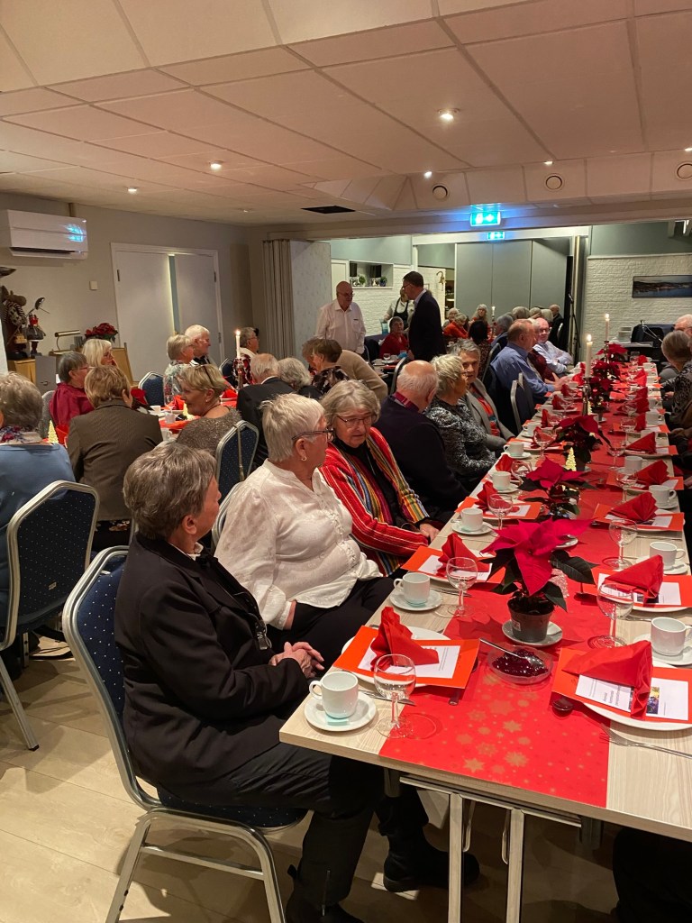 Årets julemiddag samlet 83 medlemmer våre til god mat og hyggelige timer sammen. Sverre Risdal sto for underholdningen. Signe Eidskard Morka leste jule-historie og leder leste dikt. Brit Oddveig Larsen Risdal takket for maten. Fremfor alt ble den gode samtalen dyrket. Bildene nedenfor viser bordene. Takk for i år, og god jul!